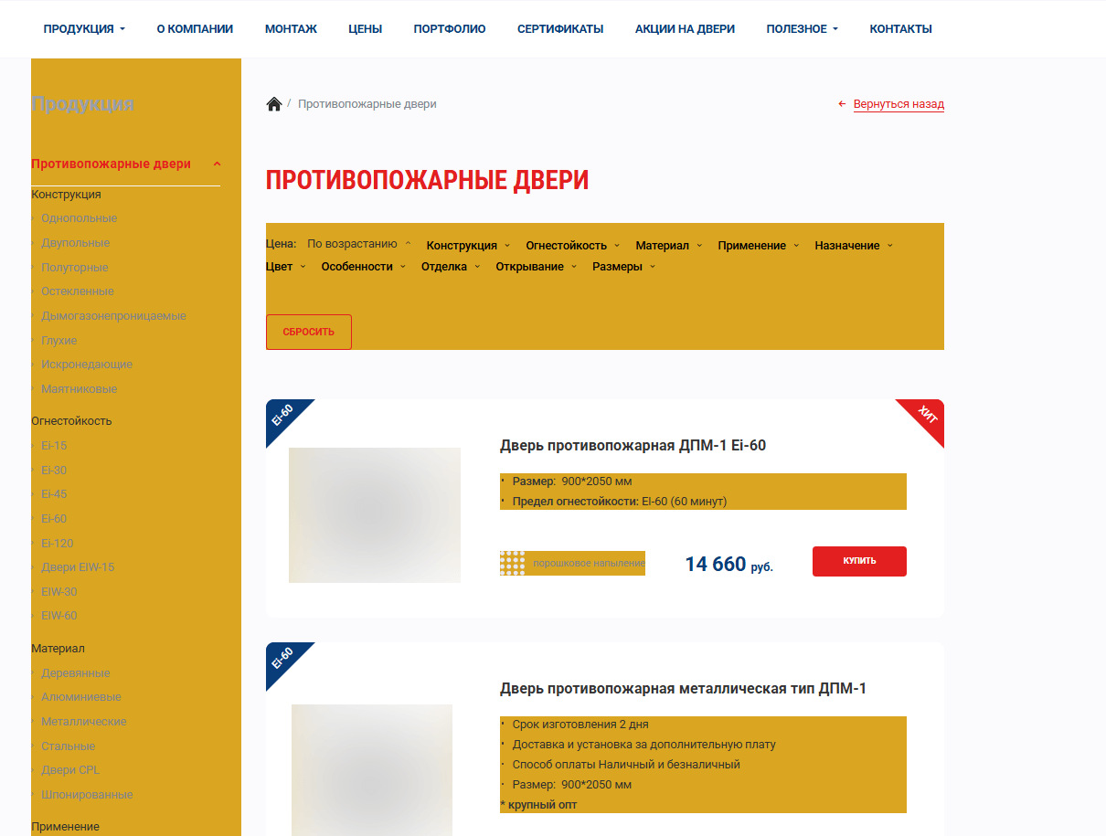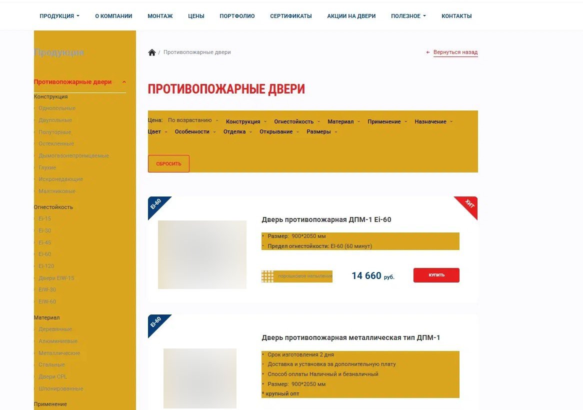 — Созданы отдельные посадочные страницы для различных типов дверей (EI30, EI60, металлические, стеклянные).
