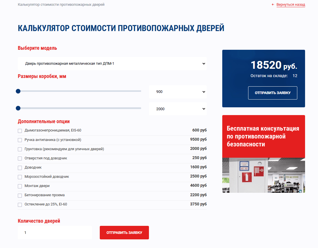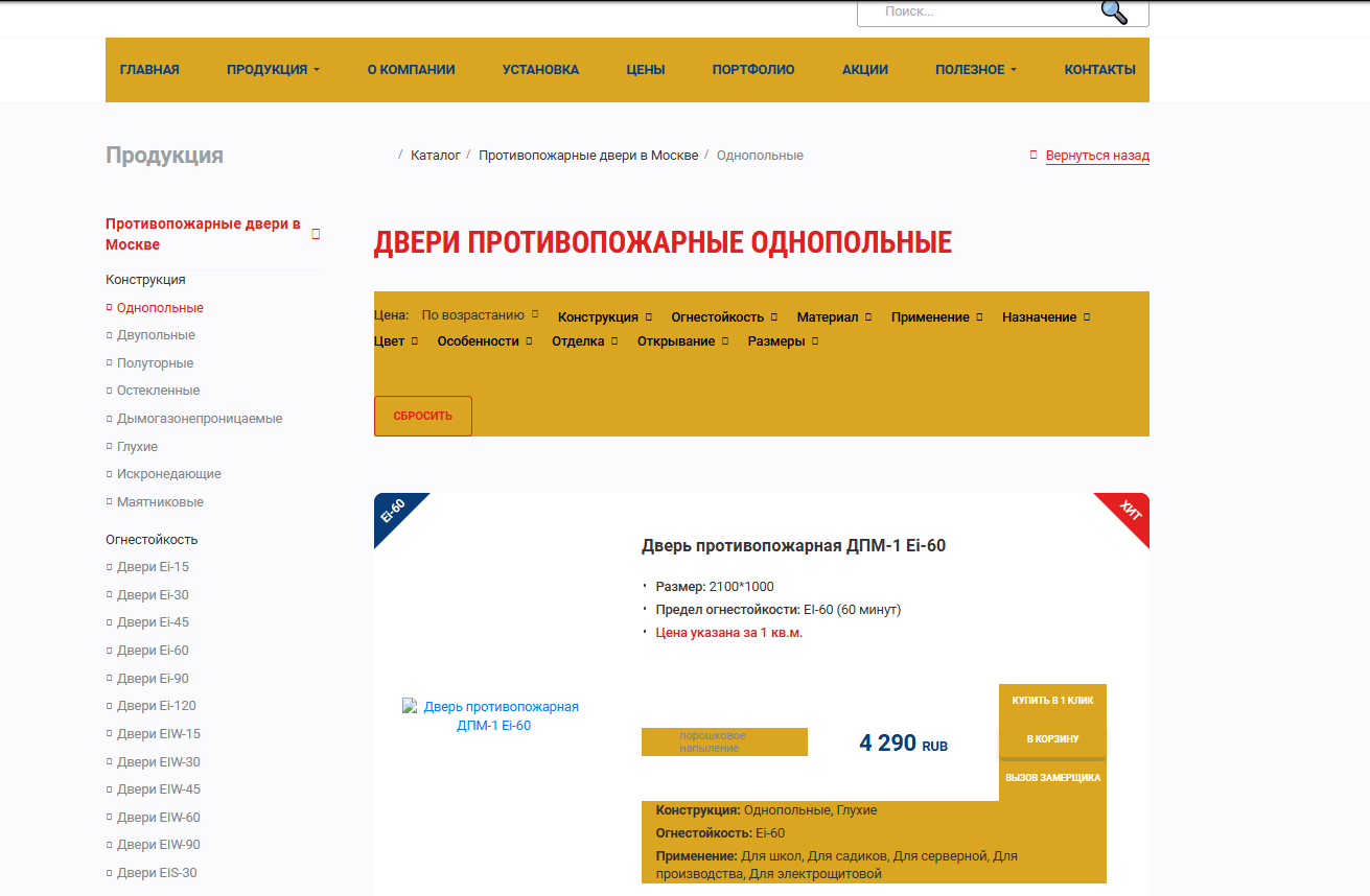 — Созданы отдельные посадочные страницы для различных типов дверей (EI30, EI60, металлические, стеклянные).