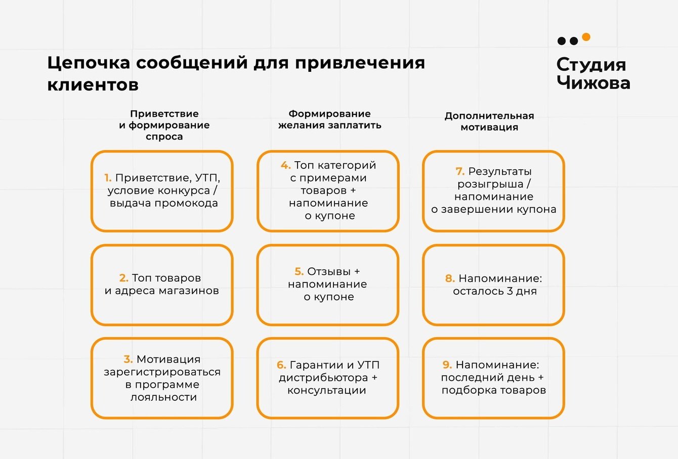 Холодная аудитория — розыгрыш товаров бренда, например смартфонов или колонок. Всем участникам даем 250 бонусов на счет в программе лояльности, показывая в письмах, на что можно потратить бонусы.