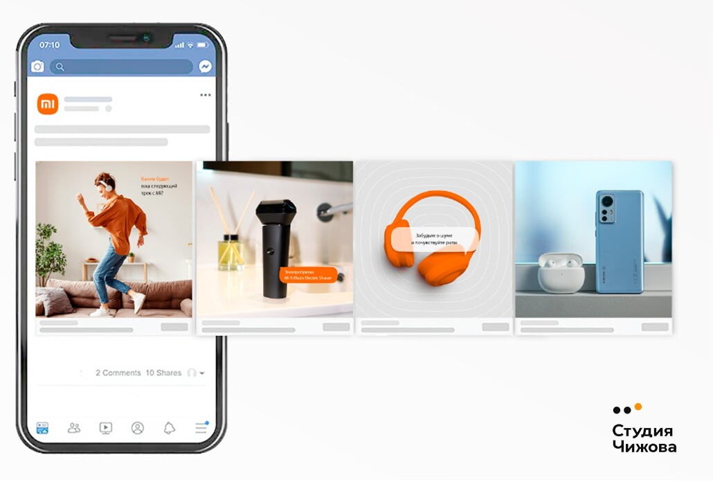Учитывая, что Xiaomi — известный бренд, нам не нужно в рекламе знакомить с компанией, поэтому в креативах используем подходящие сегменту товары и мотивируем переходить в рассылку для получения скидки или бонусов.