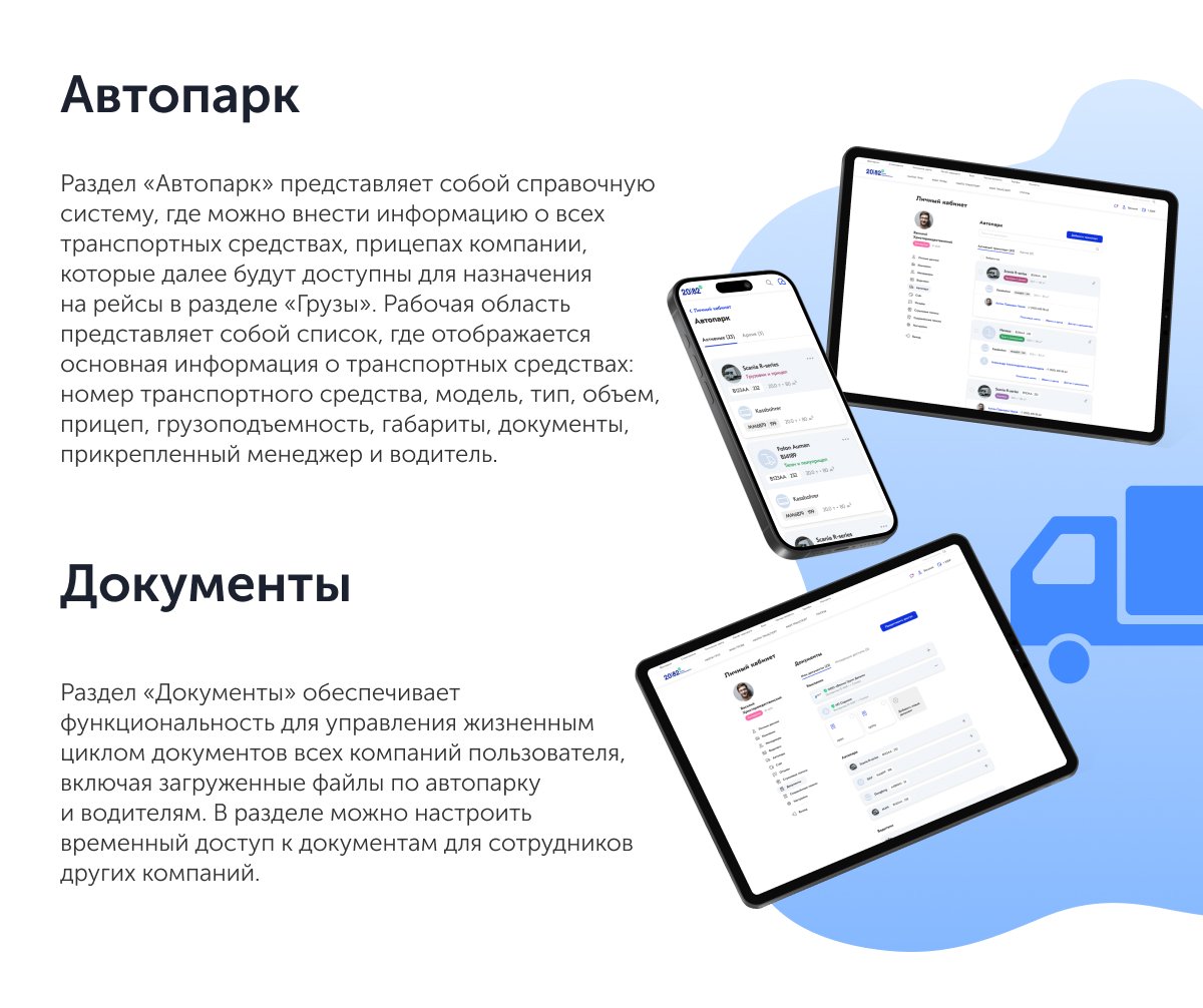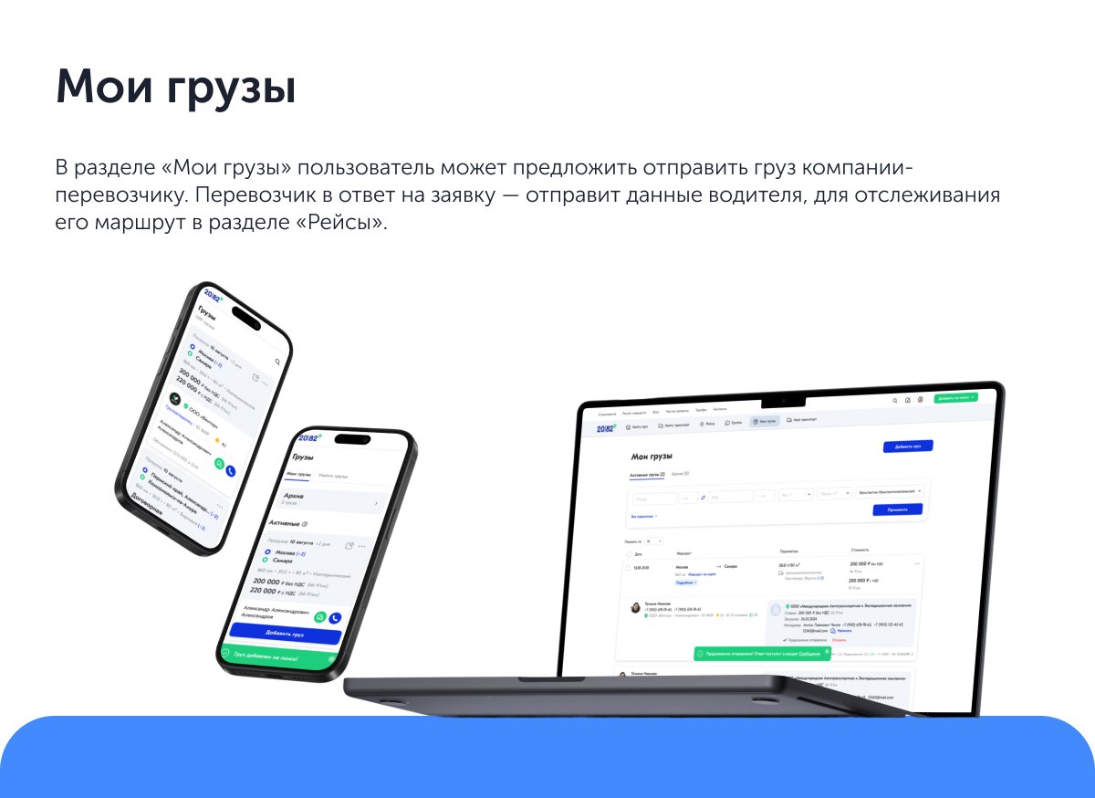 - Поиск грузов, заказчиков, транспорта и перевозчиков.