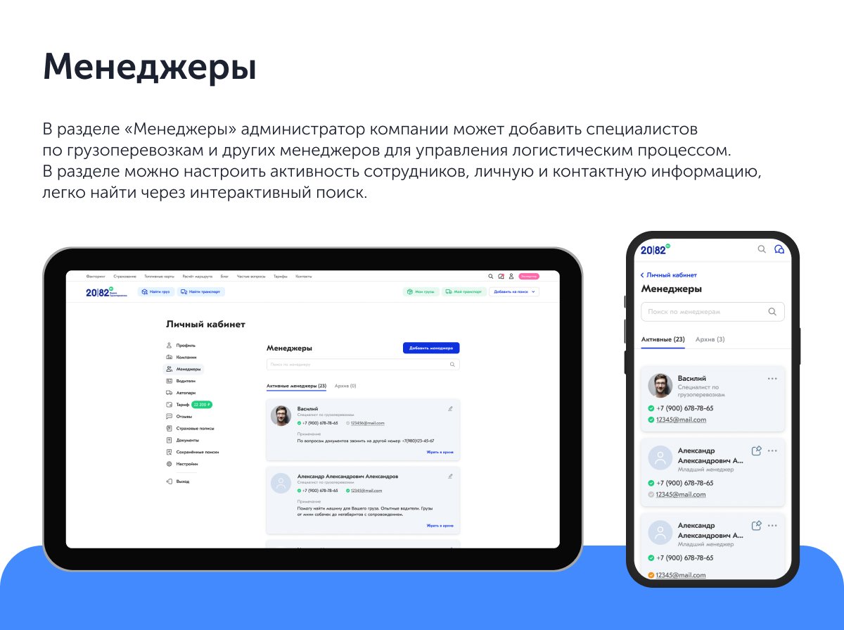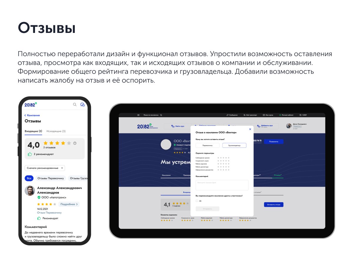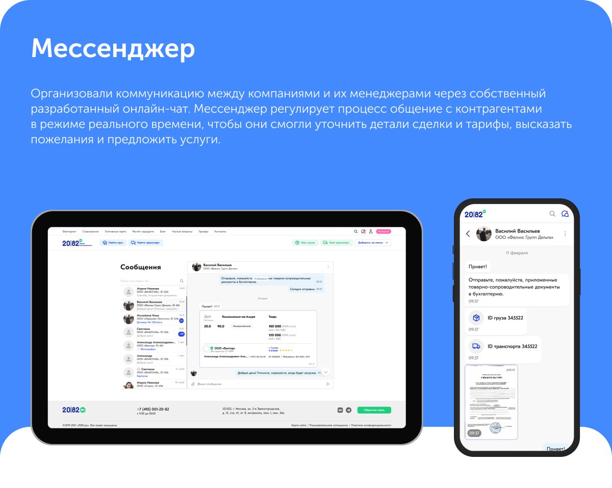 2082.ru — это портал грузоперевозок, где заказчики размещают заказы на перевозки, а перевозчики объявления о свободном транспорте.