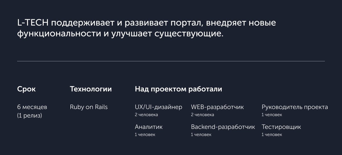 Наша команда поддерживает и развивает портал, внедряет новые функциональности и улучшает существующие. На данный момент: