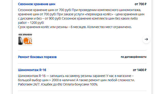 Рекомендуем анализировать запросы и добавлять собственные услуги, если в стандартном списке нет той, которая соответствует нужному запросу. Так можно повысить просмотры и, соответственно, реальные заказы.
