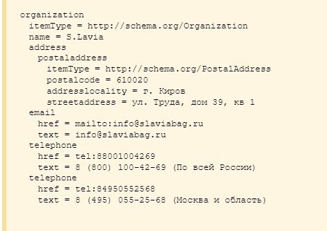 Отсутствие микроразметки данных о компании. Микроразметка помогает поисковым системам лучше понимать содержание страниц и представлять его в удобном для пользователей виде. Ее отсутствие негативно влияло на релевантность и привлекательность сниппетов в выдаче.