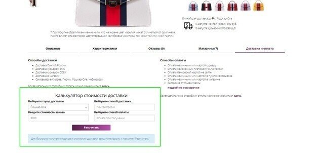 Отсутствие калькулятора доставки. Калькулятор доставки является важным элементом удобства для пользователей и может положительно повлиять на поведенческие факторы.