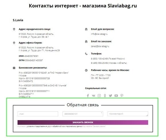 Отсутствие формы обратной связи в разделе "Контакты". Форма обратной связи обеспечивает дополнительный канал коммуникации с потенциальными клиентами и может улучшить конверсию.