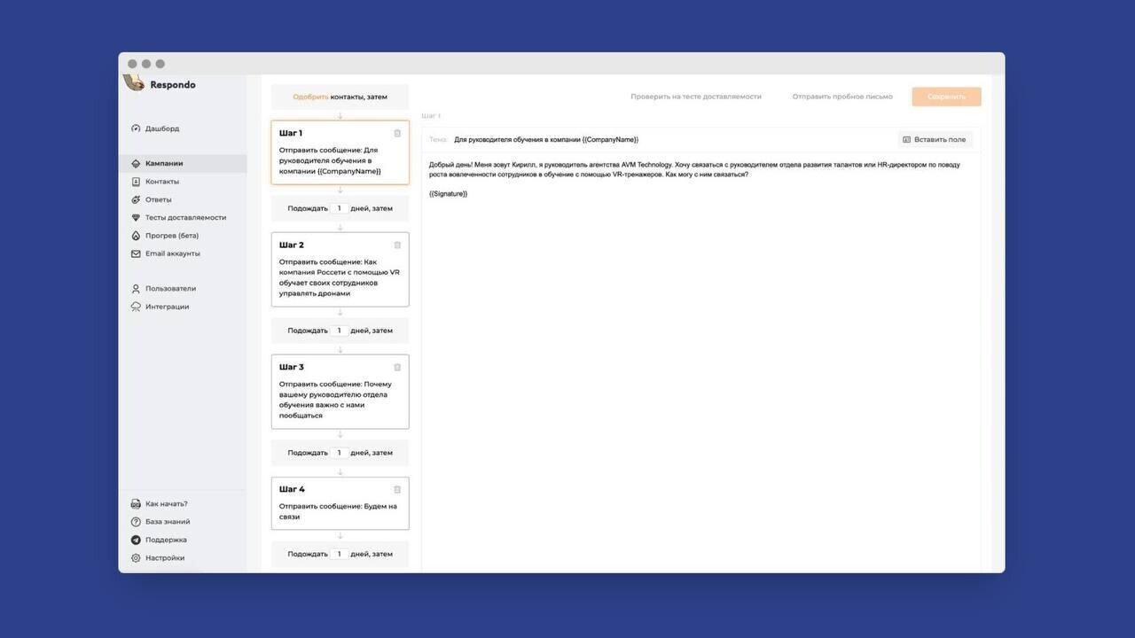 Если для обычных массовых рассылок просто берут базу электронных адресов компаний и направляют им одно и то же письмо, мы пошли как раз таки тем, что называется аутрич — составили несколько персональных писем от лица менеджера AVM Technology и запустили по базе.