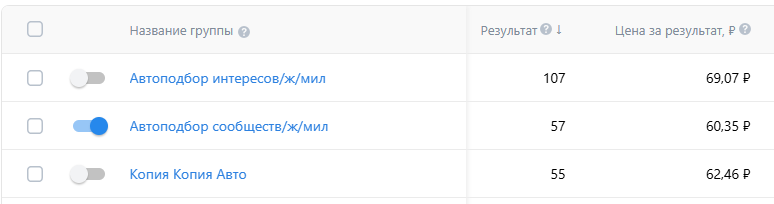3. При обнаружении эффективной кампании с низкой стоимостью подписки (до 100 рублей) мы дублировали ее, что позволяло новой кампании также обучаться и показывать хорошие результаты.