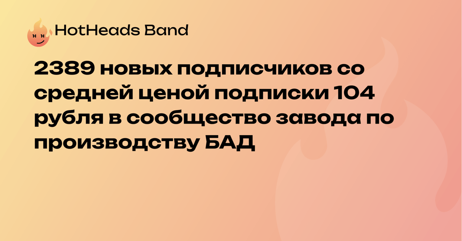Результаты: 2389 новых подписчиков со средней ценой подписки 104 рубля