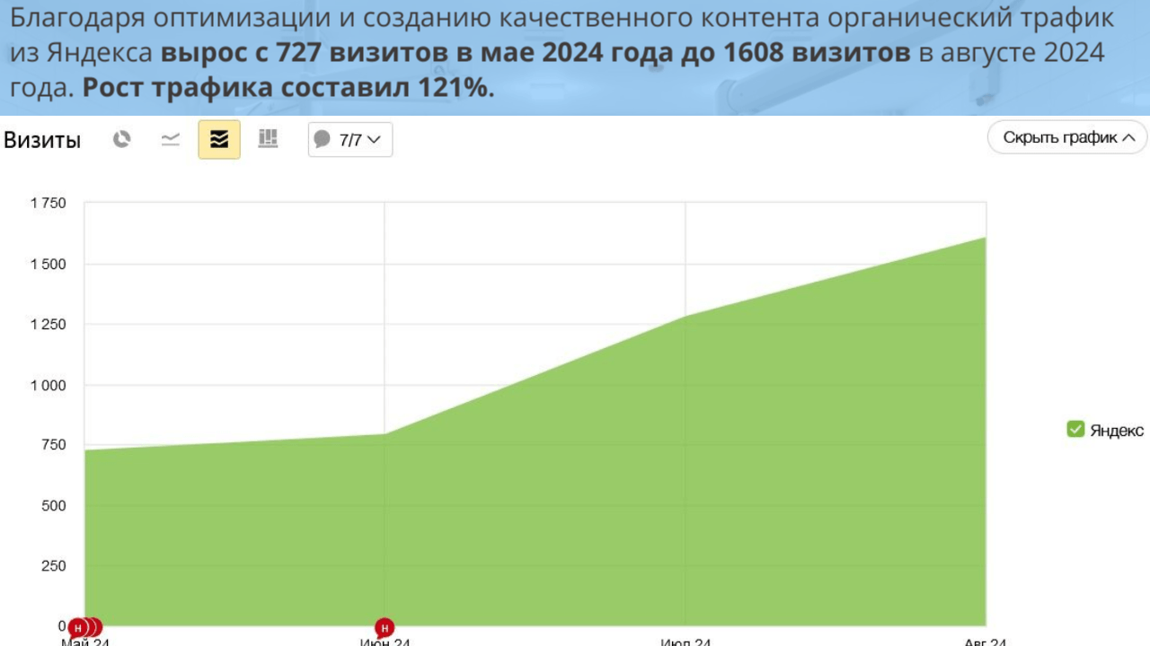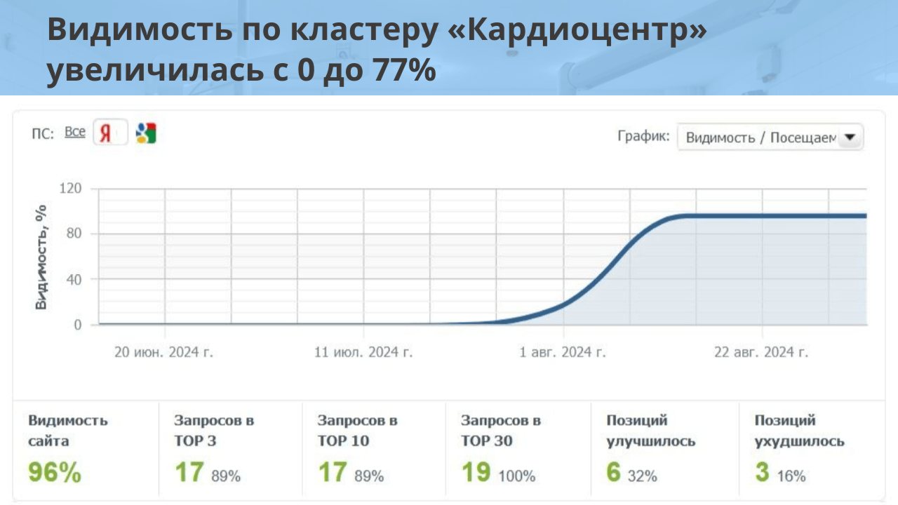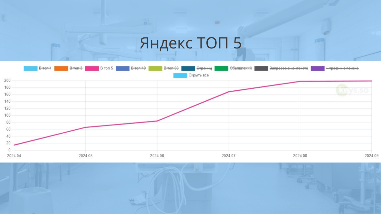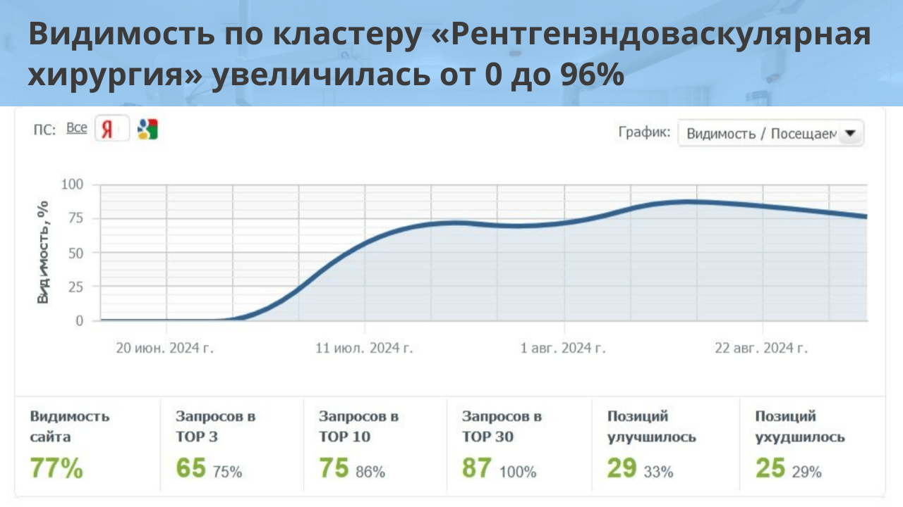 Мы получили значительный рост клиентской базы и укрепление позиций клиники на рынке. Здорово, что правильное SEO-продвижение становится неотъемлемой частью стратегии привлечения новых пациентов и повышения репутации медицинских учреждений.