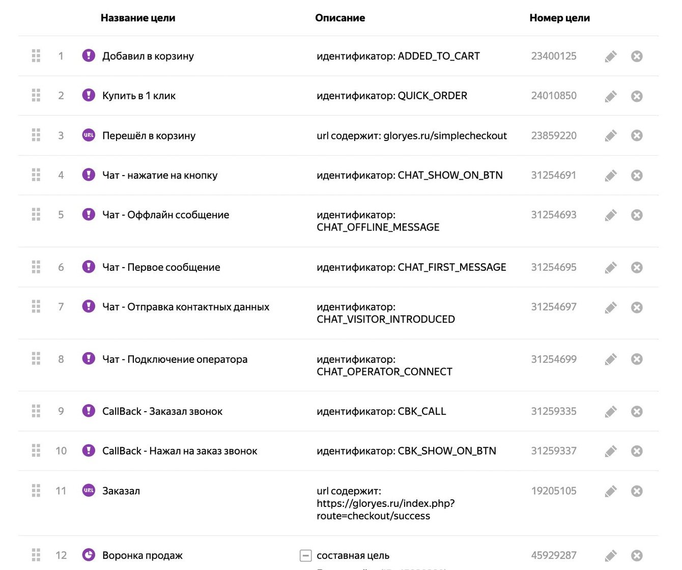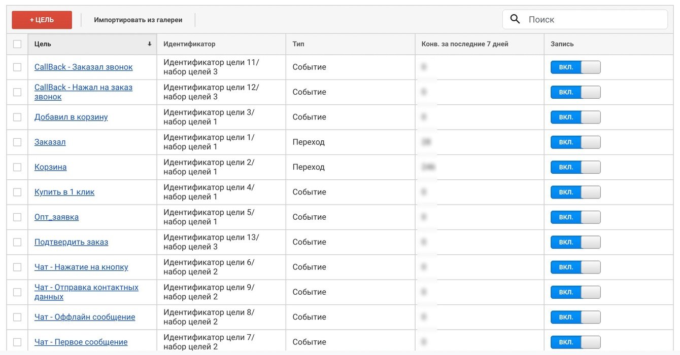 На сайте gloryes.ru мы настроили цели для Яндекс.Метрики и Google.Analytics.