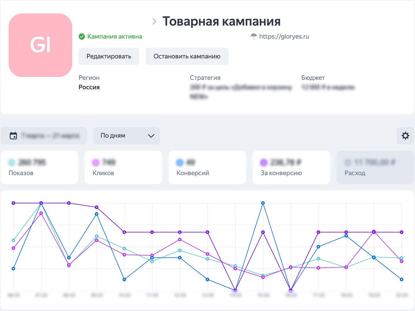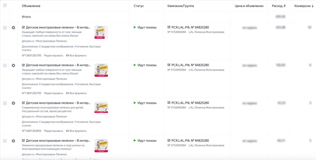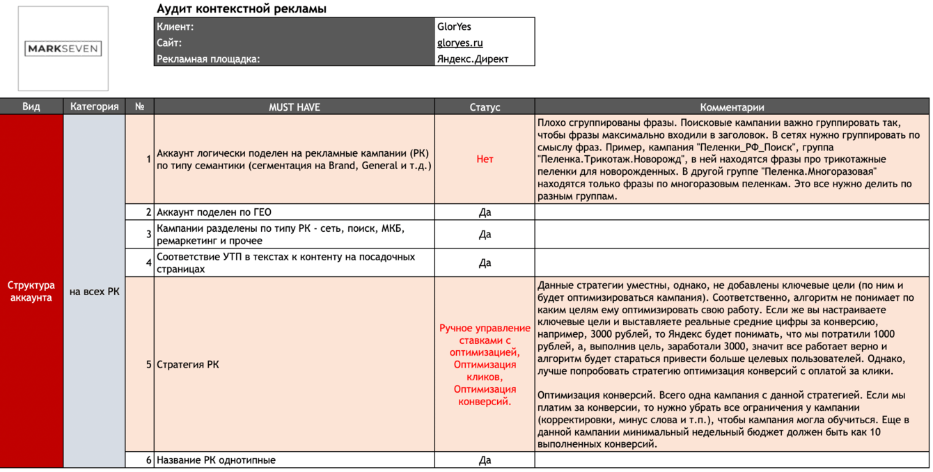 Перед началом работ мы провели аудит существующих рекламных кампаний (РК) GlorYes.