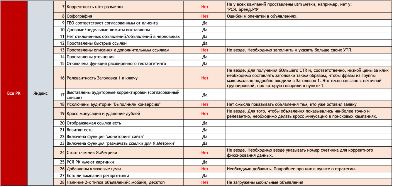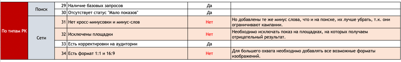 - анализ структуры рекламного аккаунта,