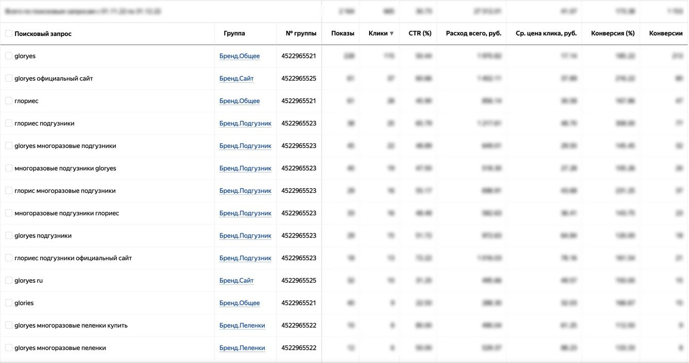 3) Выделили РК по категориям товаров / типам запросов: