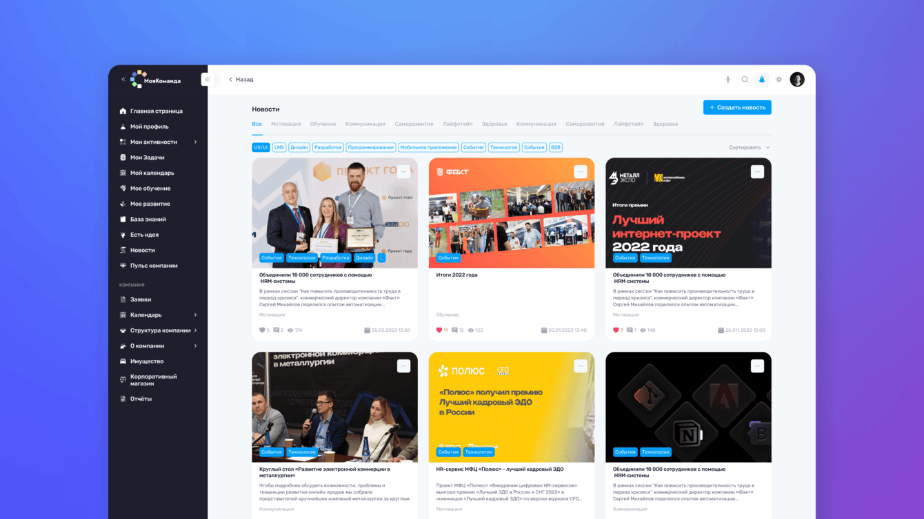 В первую очередь мы реализовали весь функционал, который был в MVP (описано выше). Затем начали собирать обратную связь от пользователей и от рынка, это позволило сформировать и приоритизировать дорожную карту проекта. На следующих этапах мы помогли заказчику выпустить несколько крупных релизов. В «МояКоманда» появились крупные модули: