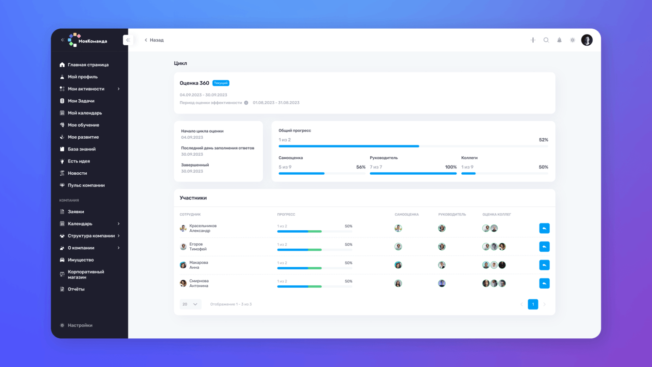 — Оценка 360, которая позволит настраивать оценочные циклы с учетом области интереса и компетенции, выявлять потенциал и точки роста, а также обсуждать результаты и планы развития талантов сотрудника.