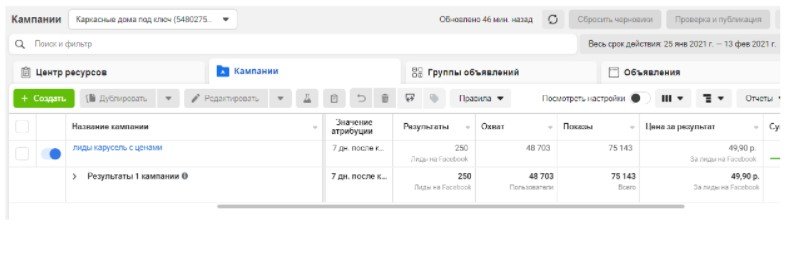 За период с 25 января по 13 февраля мы получили 250 лидов по цене 49.90рублей!