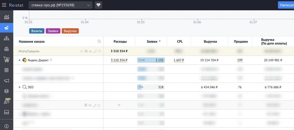 – 1 июля мы запустили Roistat и за это время было зафиксировано более 2 млн. руб. выручки.