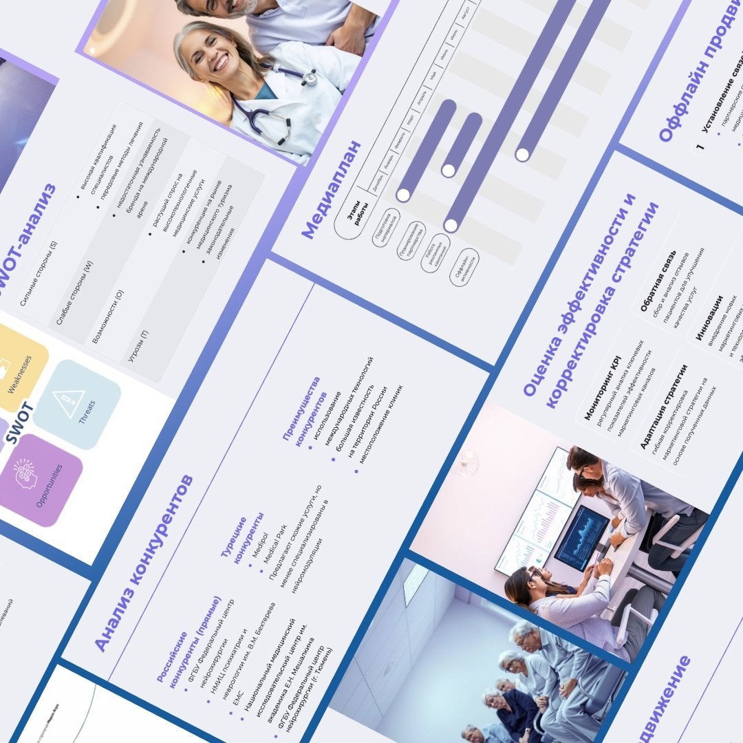 1. Анализ конкурентов: изучили российских и турецких конкурентов и выявили их слабые стороны — недостаток русскоязычных ресурсов и сложность коммуникаций с русскоязычными пациентами. Это помогло выделить конкурентные преимущества Центра.