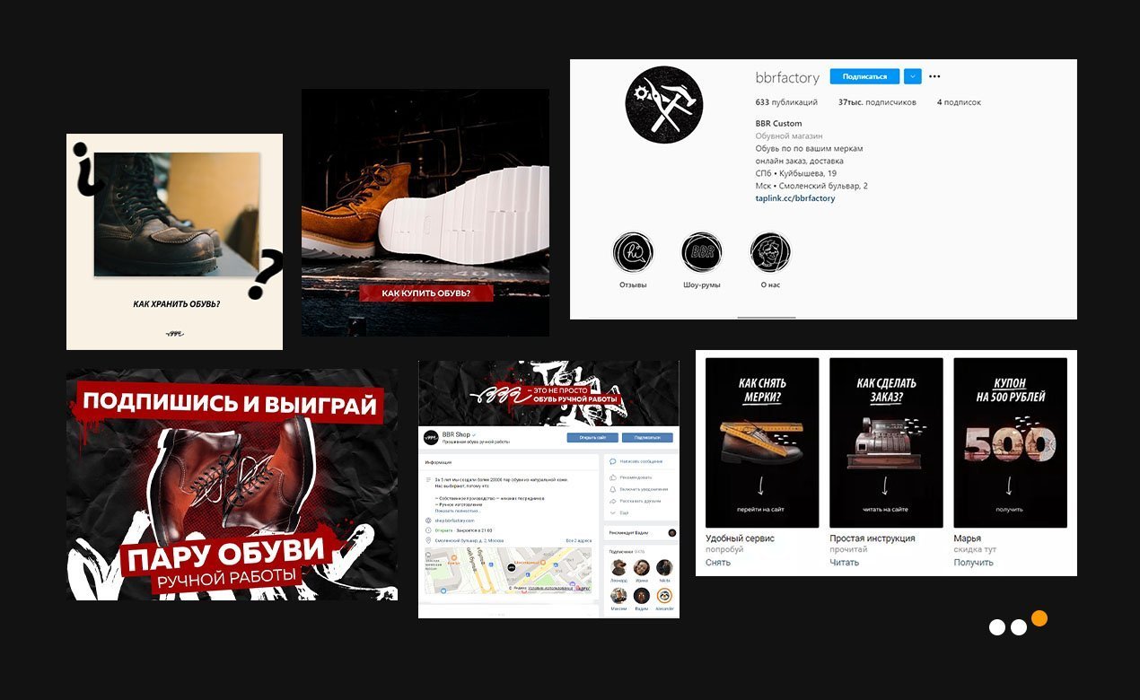 В BBR Custom мы делились отзывами, советами по уходу за обувью и репутационными материалами, показывали производство, проводили краш-тесты.