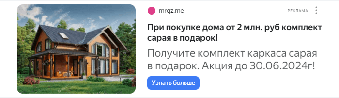 1. В объявлениях мы изменили формулировки, чтобы люди понимали, что для получения расчета стоимости дома им надо заполнить форму и дождаться звонка менеджера.
