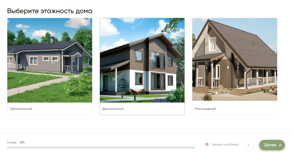 2. Разработали квиз. По опыту этот инструмент отлично показывает себя в большинстве случаев, если используется в рамках сайта, а не отдельно.