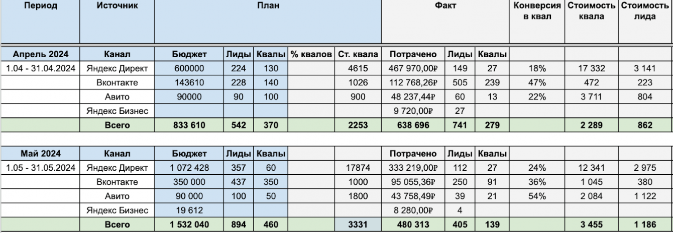 Поэтому в мае мы со своей стороны ввели квалификатора, который обрабатывал заявки, он уточнял необходимую информацию и дальше передавал заявки в отдел продаж. Это позволило существенно увеличить количество квалов с этого канала.