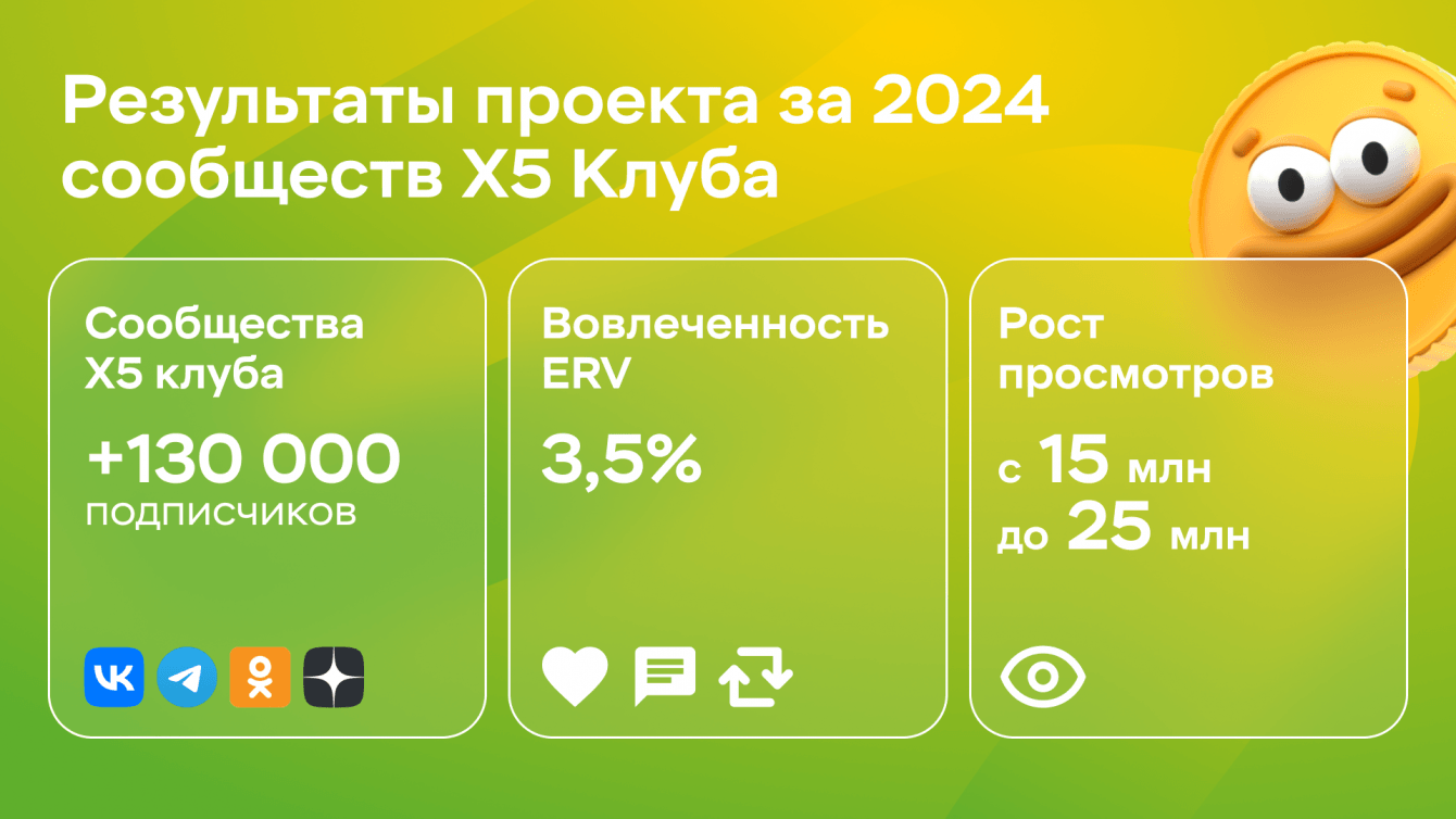Мы приняли проект в мае 2024 года, когда X5 Клуб уже имел развитые аккаунты и настроенную коммуникацию, управляемую SMM-отделом под руководством Александра Кукалева и его партнеров.