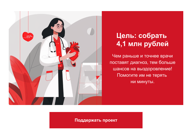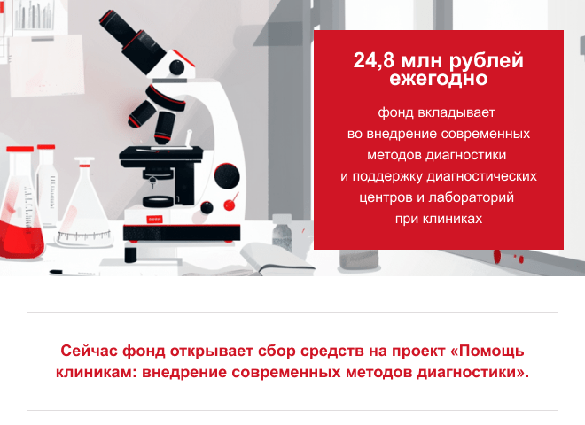 За основу мы взяли фирменный алый цвет «Подари жизнь», но сделали акцент не на «больничной», а на «научной» тематике. Так мы хотели подчеркнуть: главное — не то, что болезнь приходит, а то, что её можно победить передовыми разработками и общей помощью.