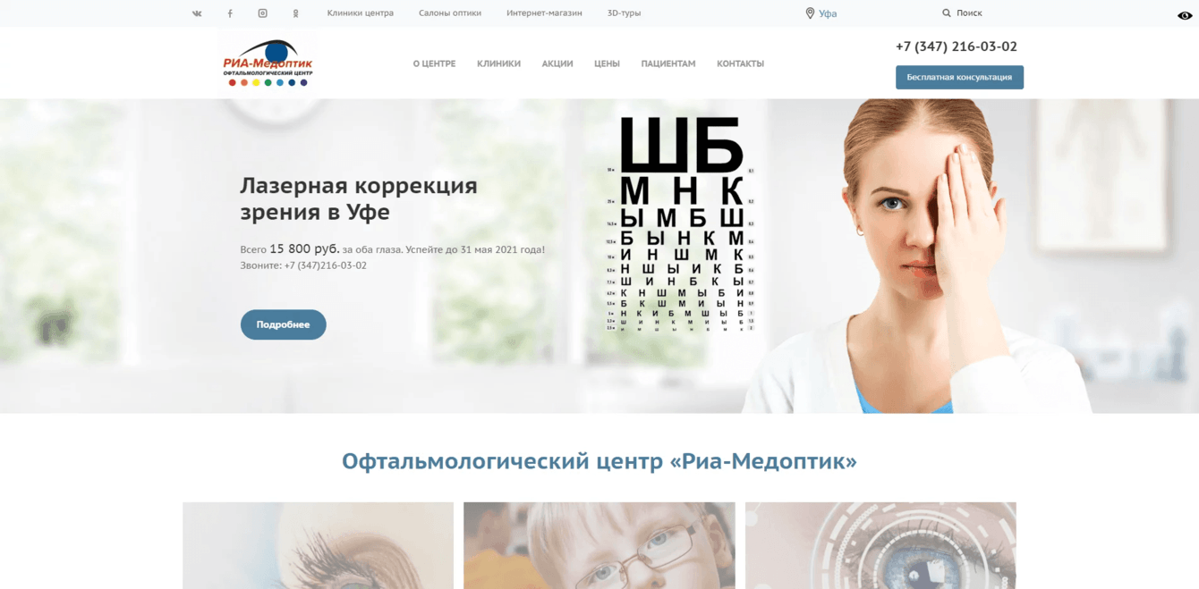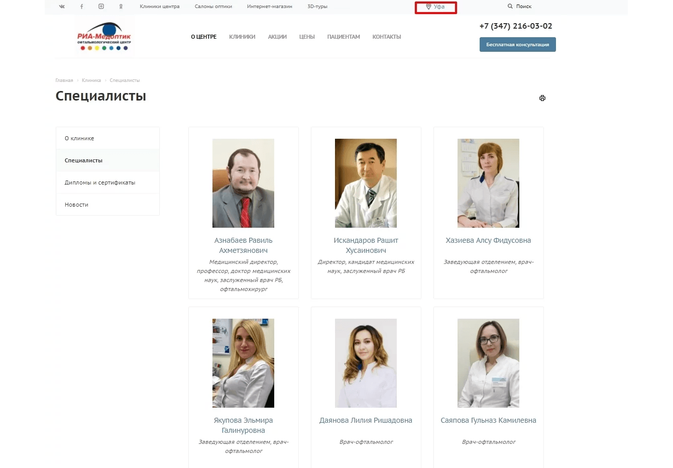 В условиях кризиса 2020 года из-за пандемии COVID-19 наш клиент, сеть офтальмологических центров в Башкортостане, столкнулся с несколькими проблемами. Клиники оказывали услуги в пяти городах России, и на момент знакомства три филиала имели отдельные сайты.