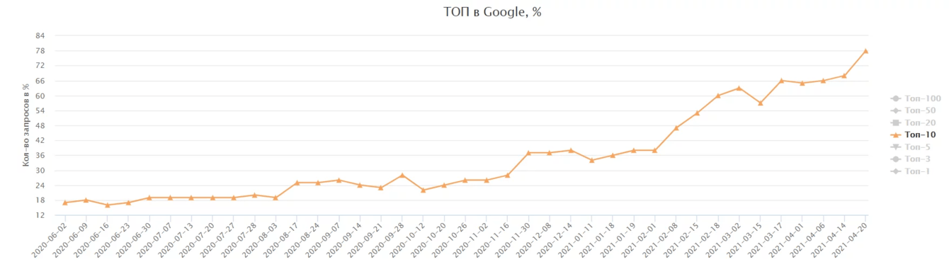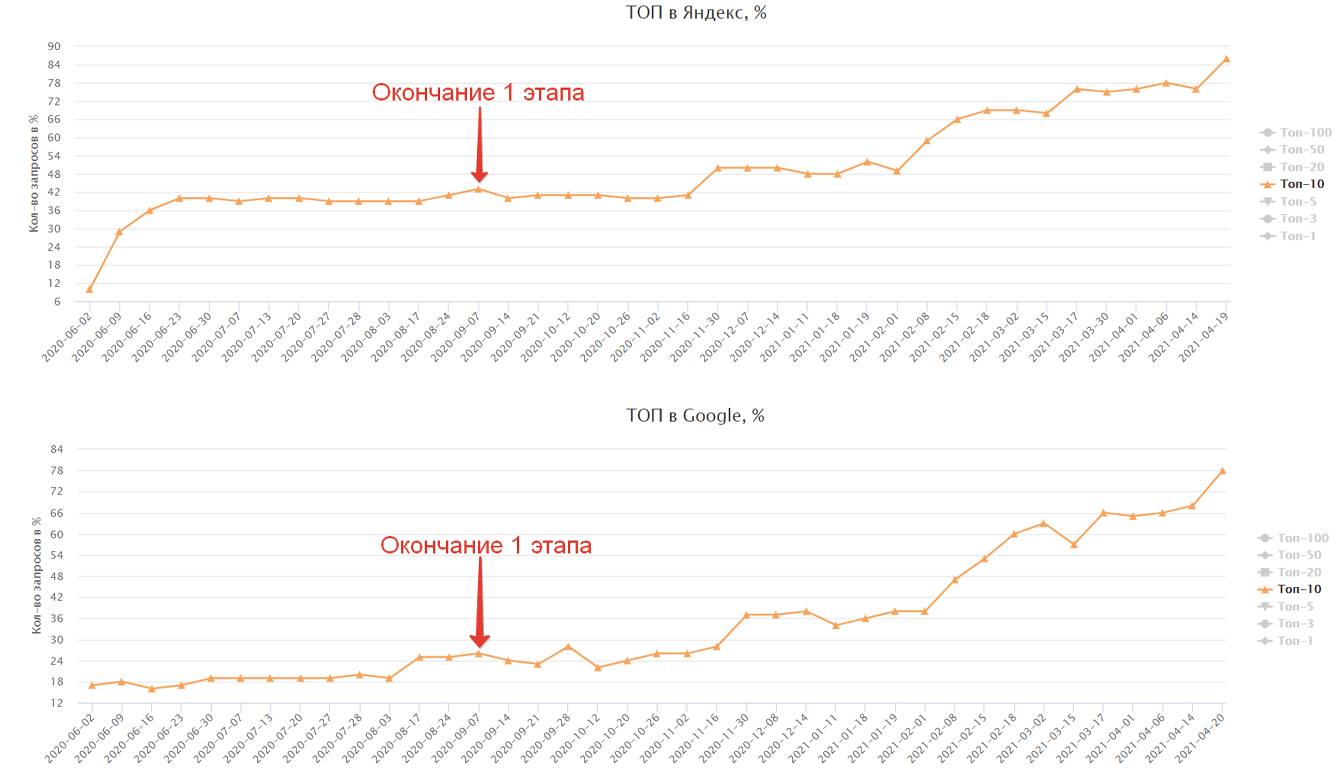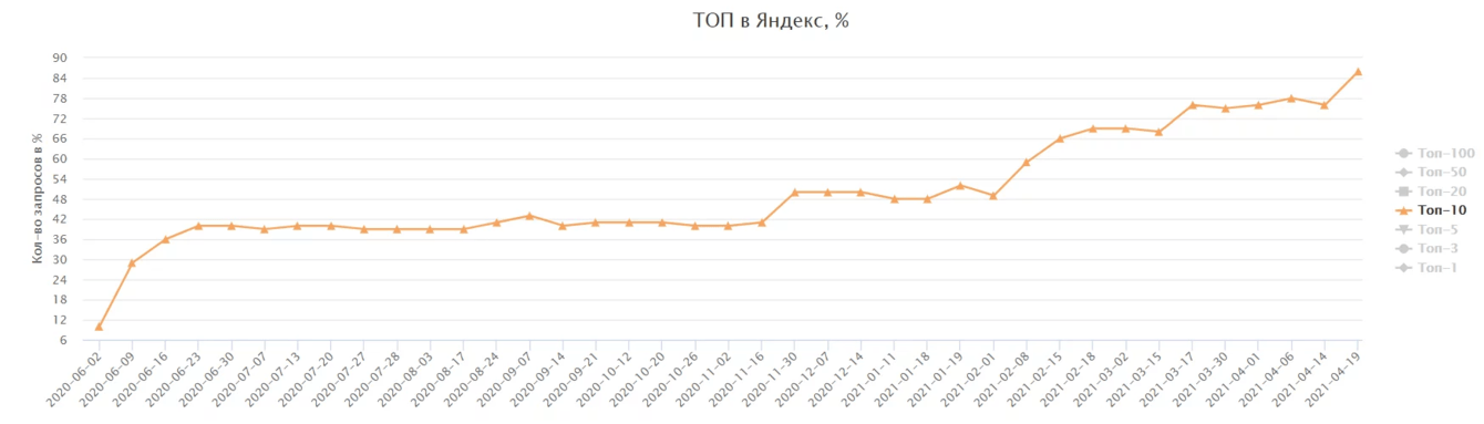 Увеличение количества запросов в ТОП-10 выдачи поисковых систем.