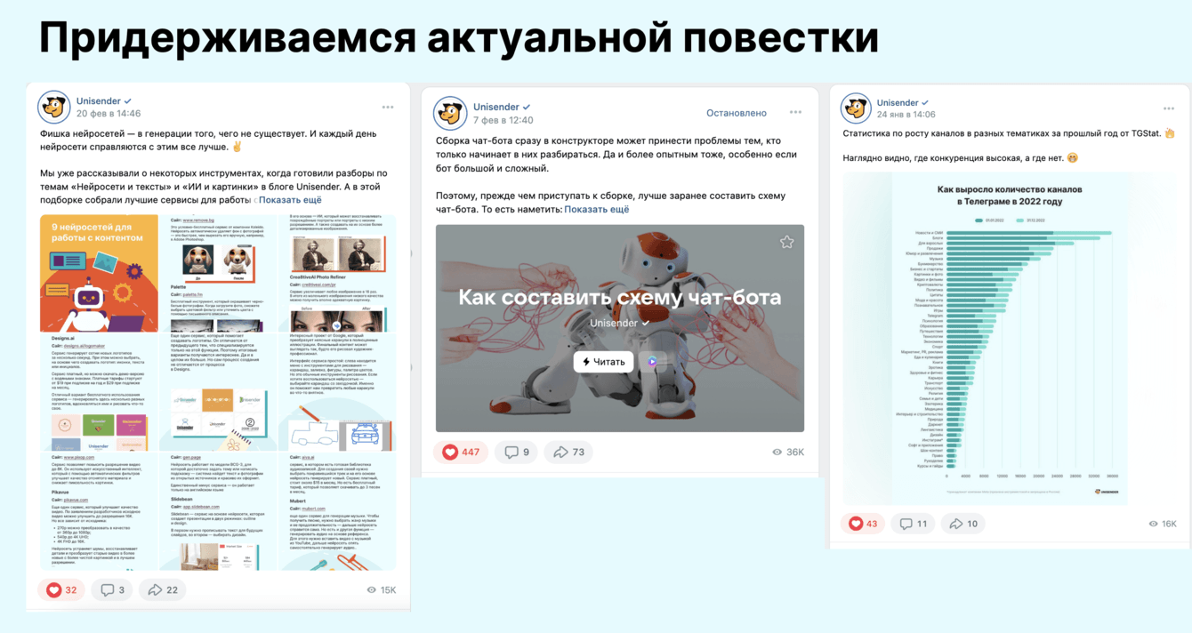 8.Регулярно затрагиваем в контенте актуальную повестку: новости диджитал и Интернета, развитие нейросетей и чат-ботов.