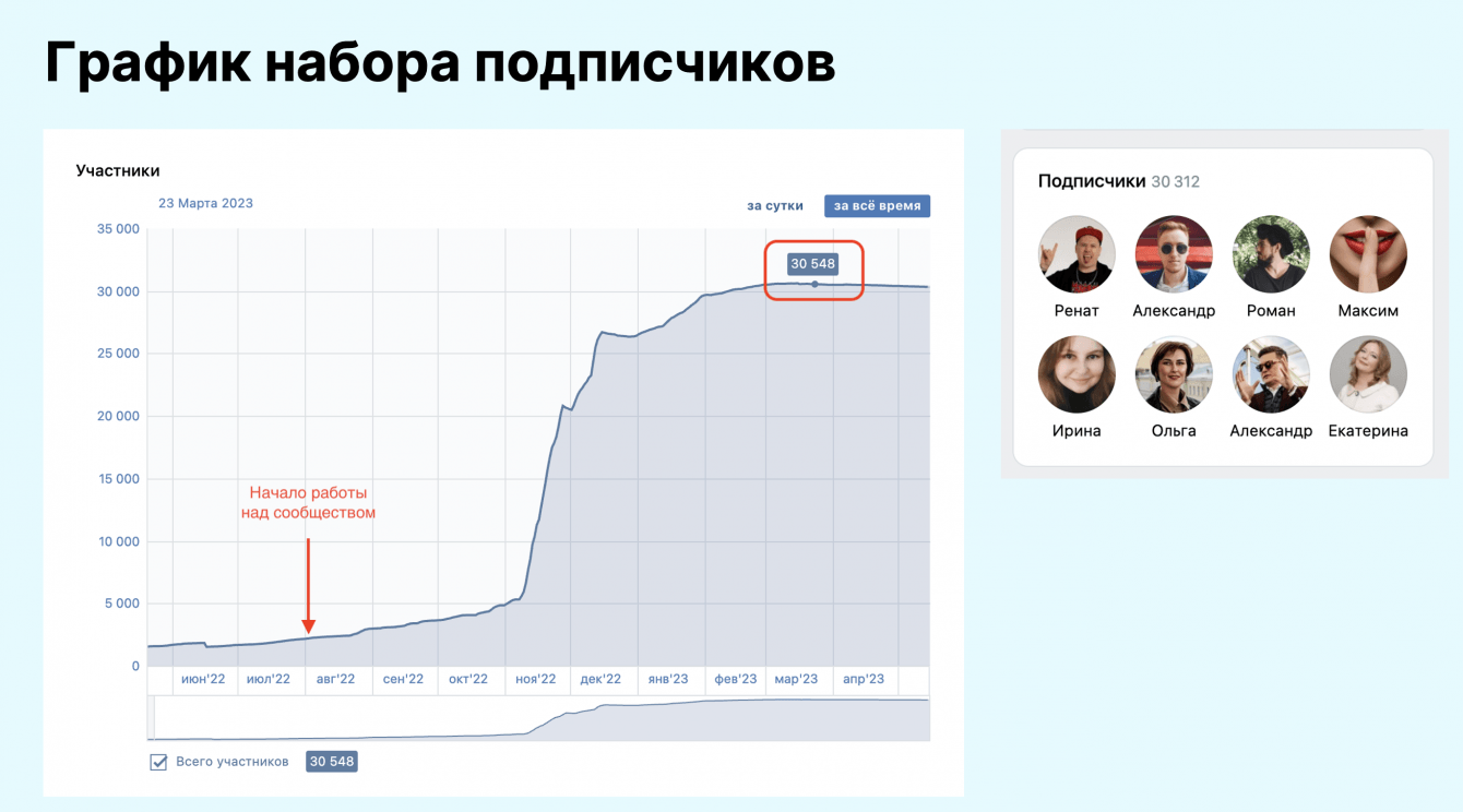1. Прирост +30000 живых подписчиков в сообществе ВКонтакте за полгода