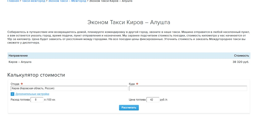2. Привлечение целевого трафика по коммерческим запросам (расчет стоимости такси из города А в город Б).