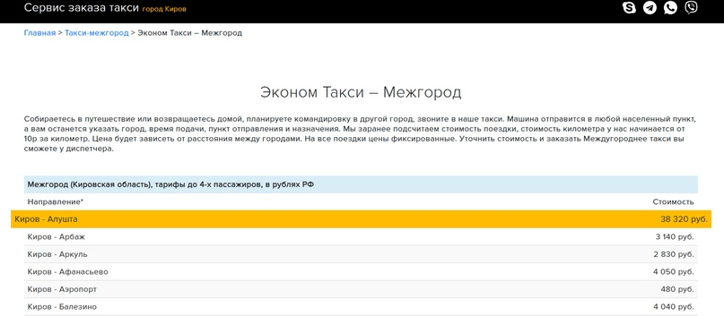 1. Информационные запросы (стоимость такси из Кирова, расписание и т.д.)
