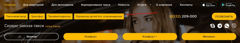 1. Быстрая навигация по основным услугам соответствует поведенческим факторам в данной нише.