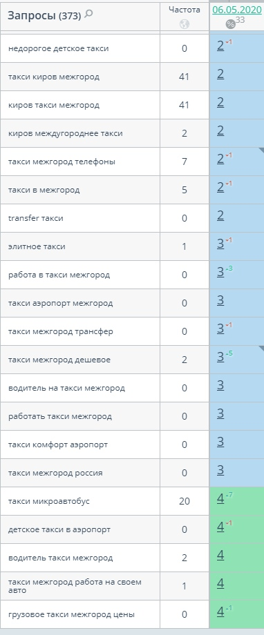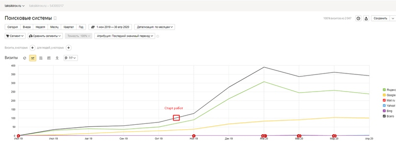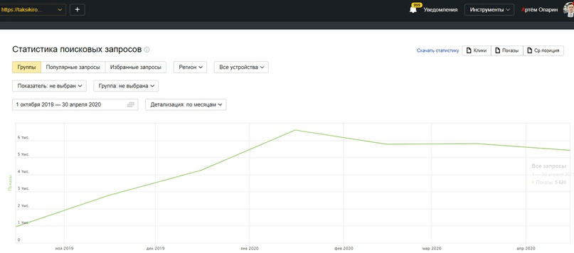 Аналогичная динамика роста наблюдалась и по другим целевым ключевым запросам, таким как "такси в Киров", "междугородние перевозки Киров" и т.д.