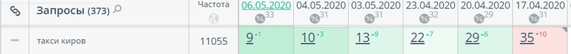 Как видно из графика, удалось вывести сайт на вторую позицию в ТОП-10 Яндекса по высокочастотному запросу "такси Киров".