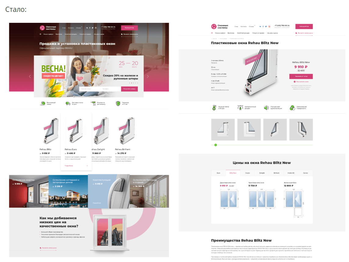 Старый сайт занимал прочные позиции на первых строчках поисковой выдачи в московском регионе. Перенос на новую версию движка практически то же самое, что и разработка нового сайта. Нам важно было сохранить верхние строчки в выдаче, так как остекление — очень конкурентная ниша, а Москва — очень конкурентный регион.