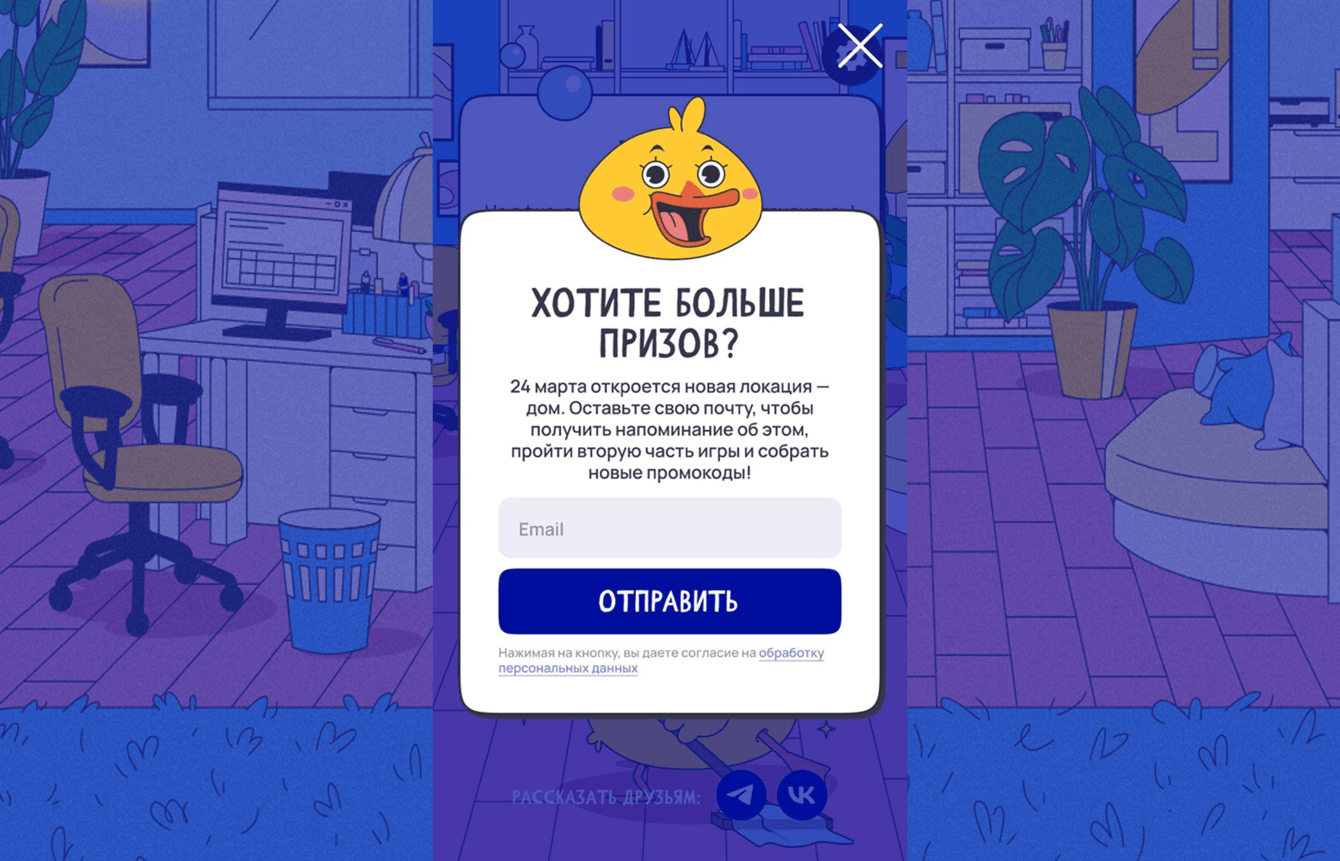 Разработали посадочную страницу для сайта клиента. Сделали в двух вариантах — на одном рассказывали только о первом уровне игры, зазывали пройти его. На отдельном баннере предлагали дождаться 24 марта, чтобы получить больше промокодов.