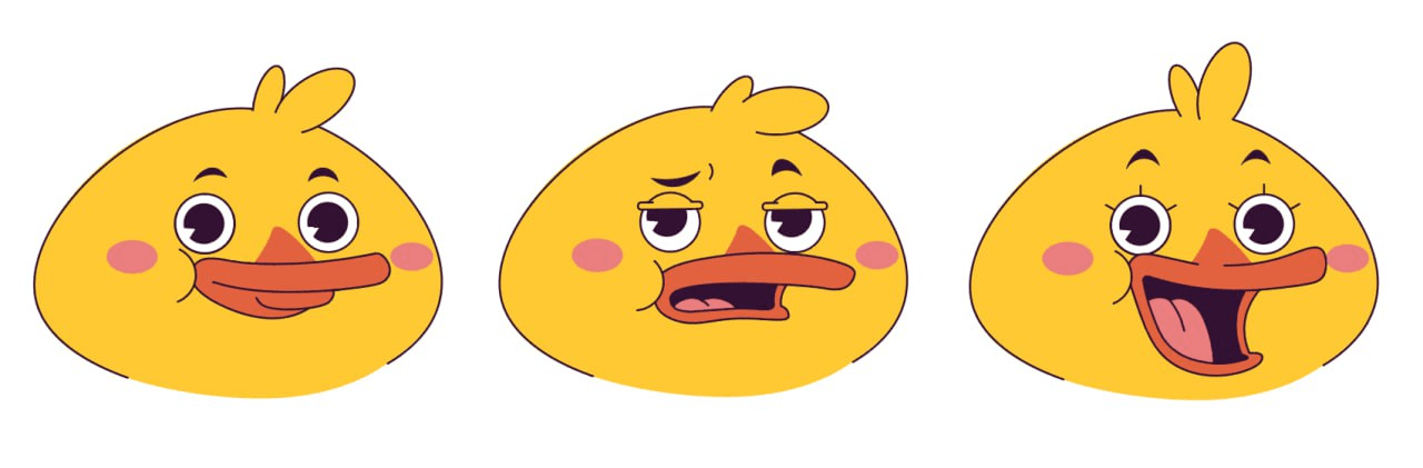 Также мы нарисовали несколько вариантов эмоций утки — хотелось максимально передать ее дерзкий и энергичный характер