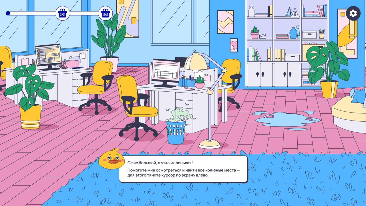 Если пользователь выбирал неправильное средство, утка сигнализировала об этом недовольной мордашкой, кряканьем и фразой. Сама проблема не решалась: монитор по-прежнему оставался грязным, а корзина для мусора — полной. И наоборот: когда игрок угадывал, маскот хвалил его и подбадривал. Такой подход превратил игру из развлечения в полезный опыт: пользователи не просто кликали по экрану, а действительно запоминали, какое средство для чего предназначено.