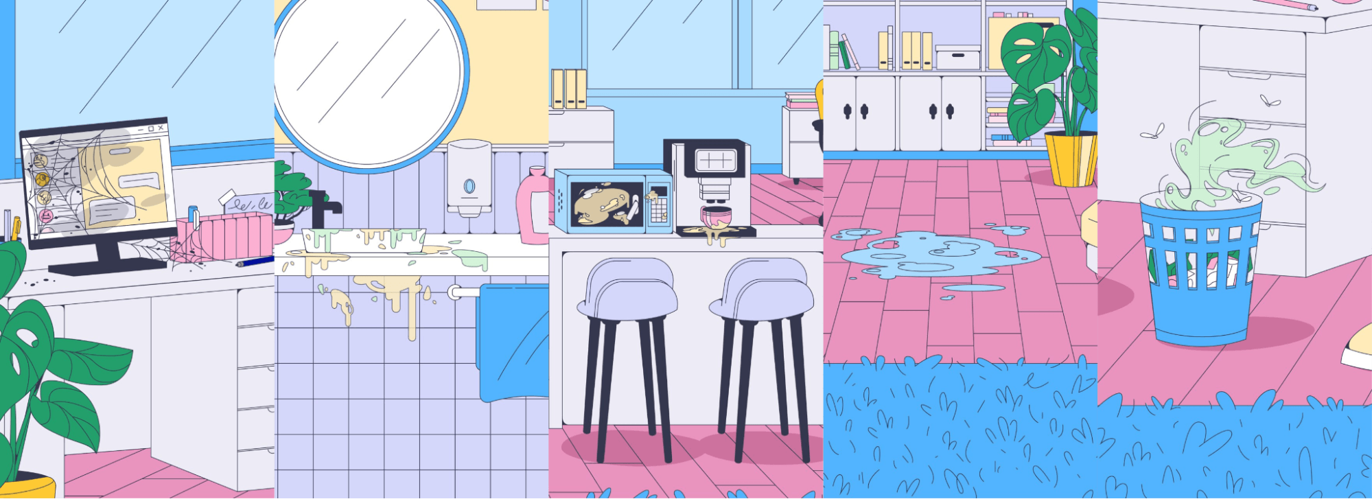 Прорисованные грязные зоны в офисе