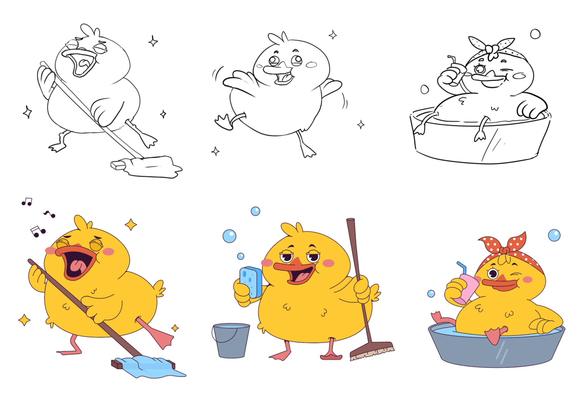 Также мы нарисовали несколько вариантов эмоций утки — хотелось максимально передать ее дерзкий и энергичный характер