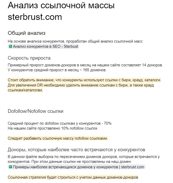 5)Сформировать стратегию по наращиванию ссылочной массы согласно параметрам конкурентов.