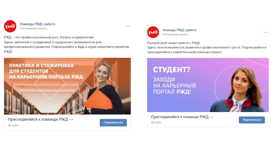 Мы уже несколько лет сотрудничаем с РЖД в разных направлениях маркетинга. В 2022 году перед нами, в числе прочих, стояла задача по привлечению целевых подписчиков в сообщество ВКонтакте бренда работодателя vk.com/komandarzd. Сообщество направлено преимущественно на соискателей и студентов, заинтересованных в работе или стажировках компании.