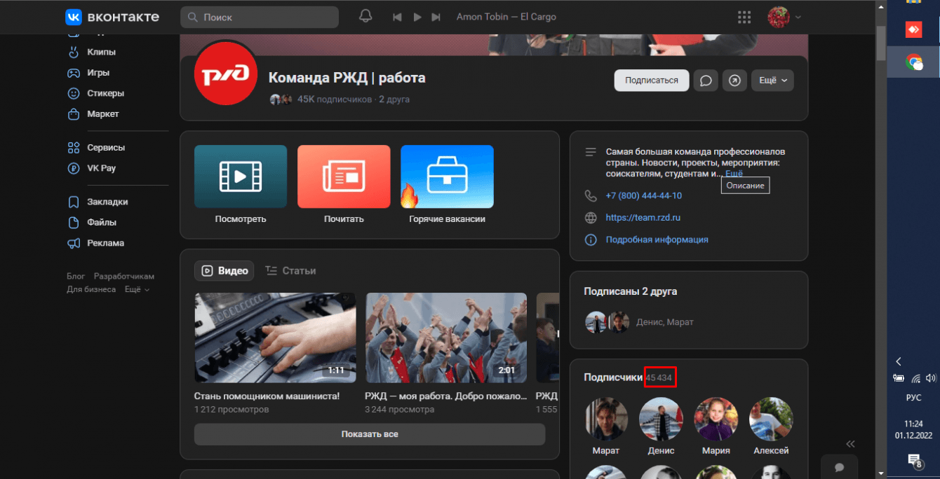 Скриншот сообщества по окончанию работ (45 434 подписчиков):