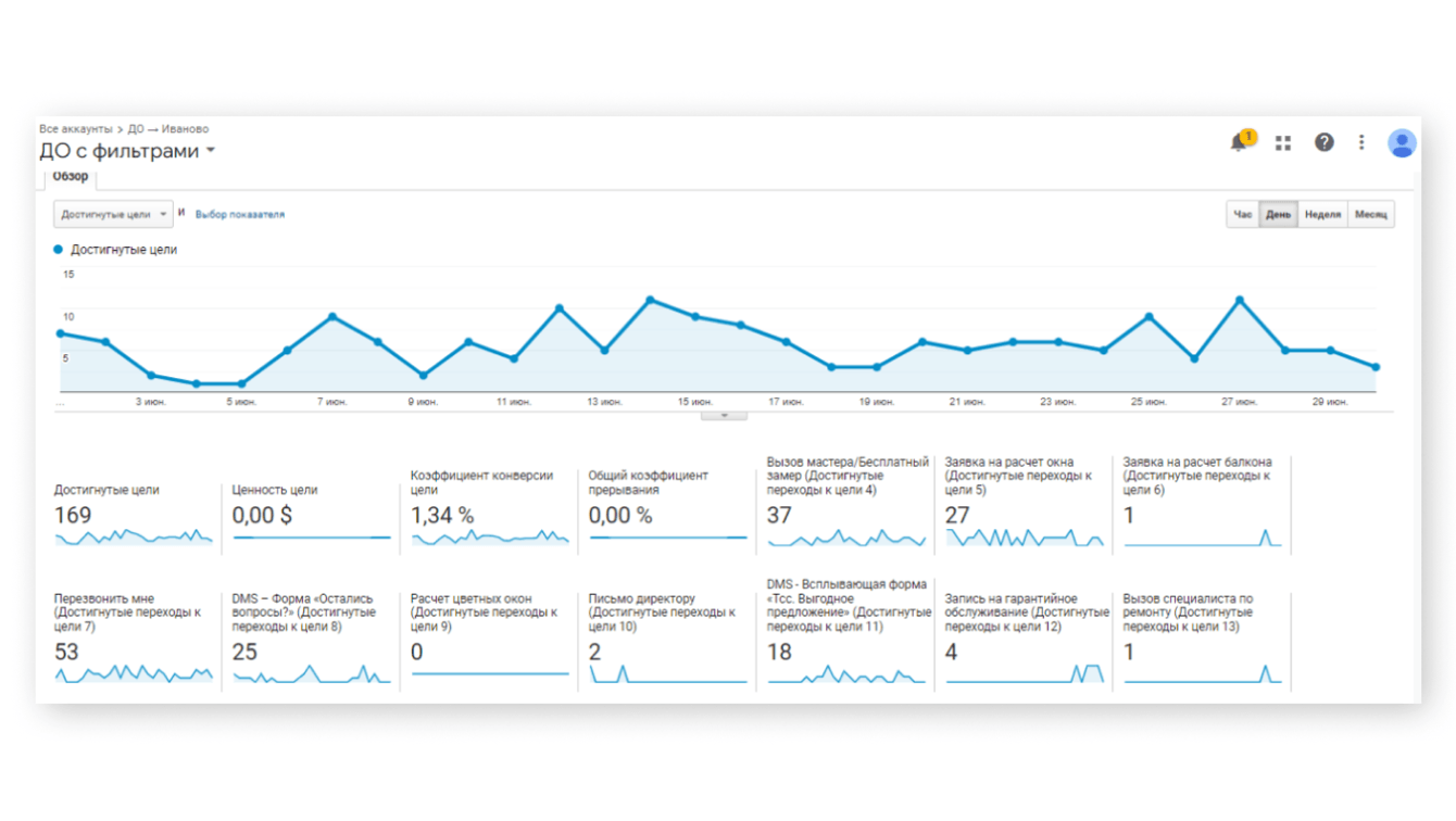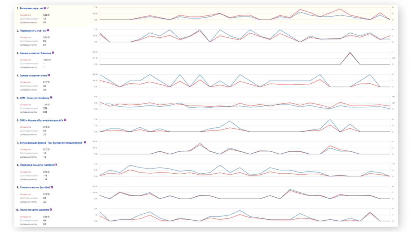 Настроили цели в Яндекс.Метрике для фиксирования конверсий на сайте. Мы исправили около 10 некорректно работающих целей. Речь идет о двух счетчиках Метрики для основного сайта и Владимирского.
