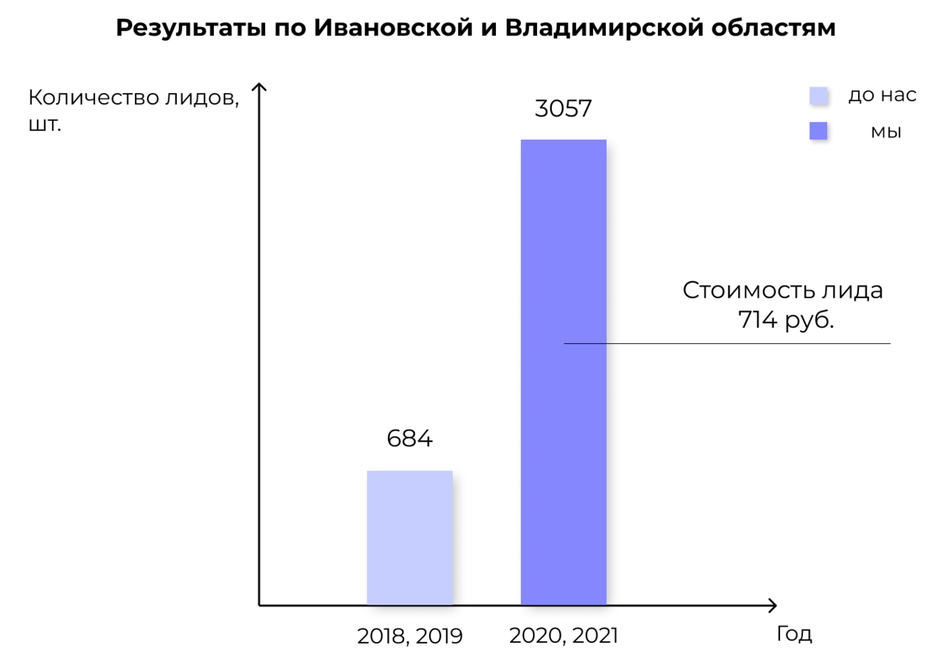 Всего по Ивановской и Владимирской областям в сезон и несезон получили 3739 лидов по цене 981 рубль.